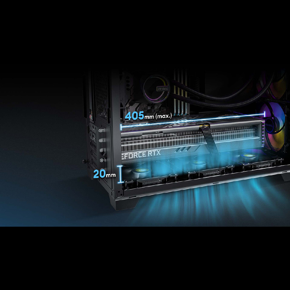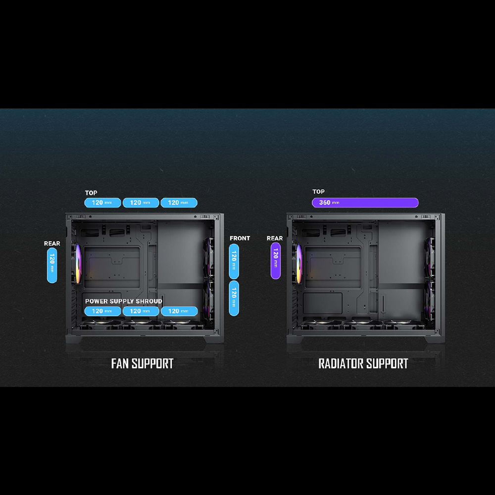 トップは最大360 mmのラジエーターが搭載でき、リアは最大120 mmのラジエーターを搭載可能、多数のコンポーネントを効果的に冷却する設計をサポートします。