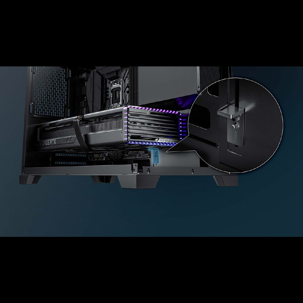 ケース下部側面にGPUサポートブラケットを搭載しているので重量級のGPUも難無く搭載できます。