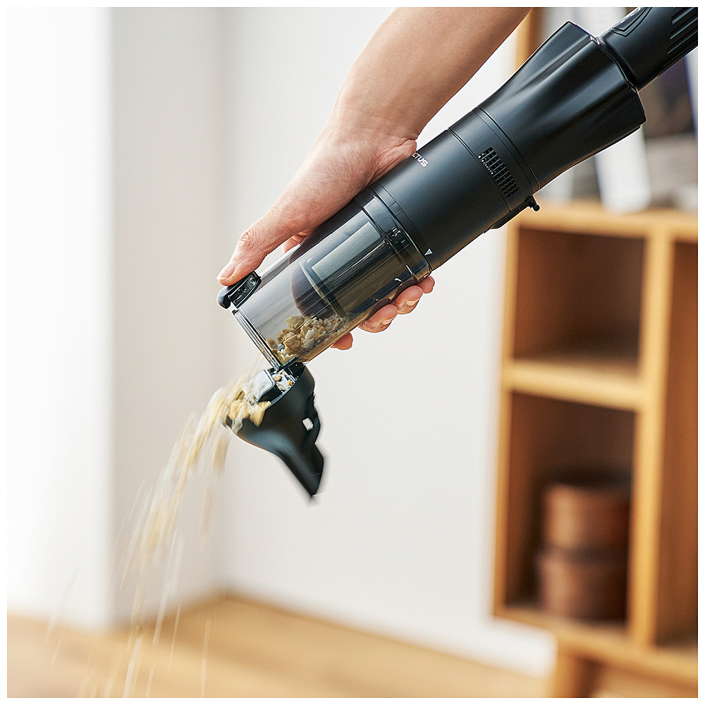 ●ワンタッチでゴミ捨て可能なダストカップ。ごみに触ることなく簡単に捨てれるので衛生的。