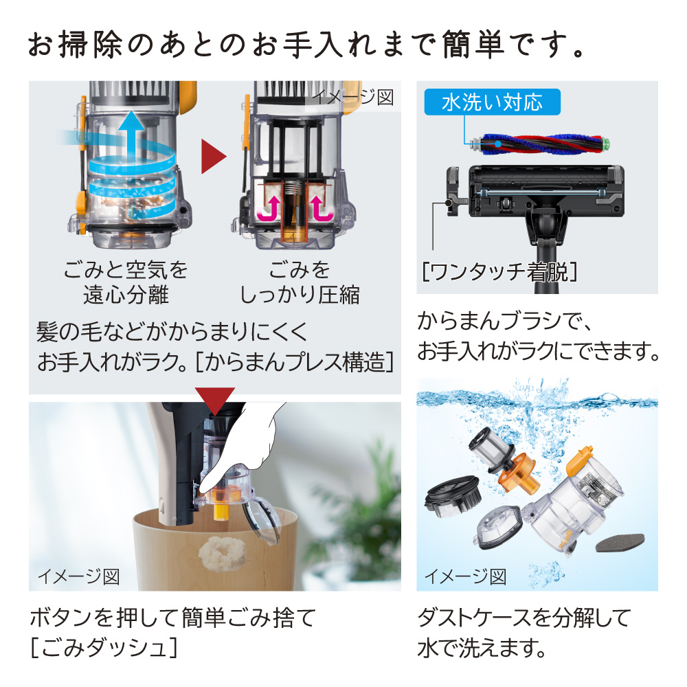 さらに、前方、後方だけでなく左右からもごみを吸い込む「4方向吸引機構」を採用。