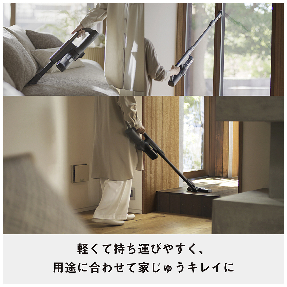 本体質量1.2キロで驚くほど軽いかけ心地。スゴ取れセンサー搭載で軽くてもパワフル。毎回のゴミ捨て不要なコードレス