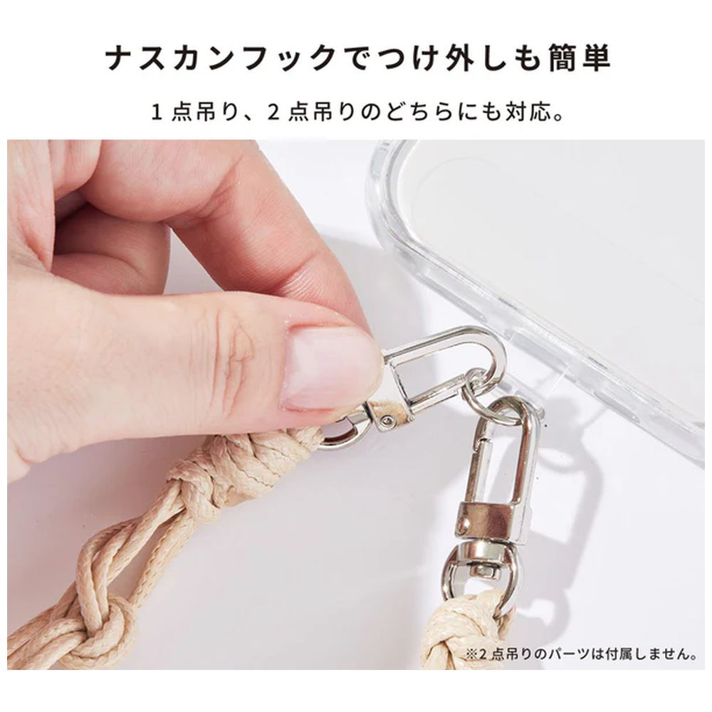 紐で編まれた存在感のあるハンドストラップ