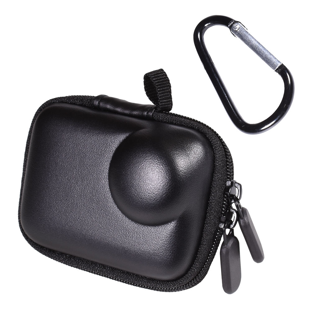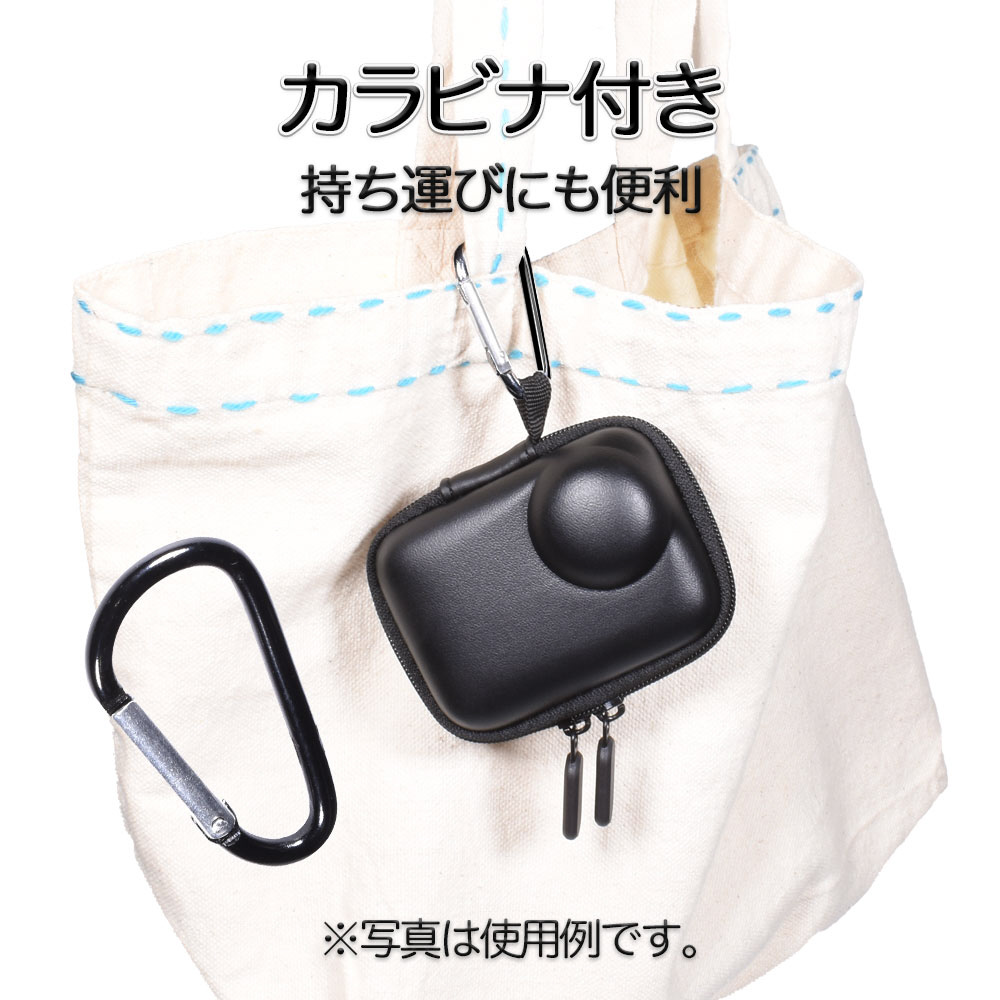 カメラ本体ぴったりサイズの持ち運び用ハードケース。バッグやリュックに引っ掛けられるよう、持ち運びに便利なカラビナ付きです。