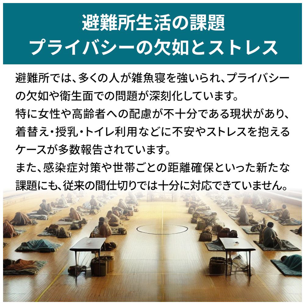 災害時の集団避難生活における被災者のプライバシーを守ります。