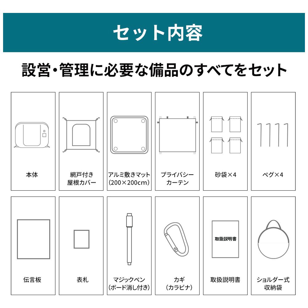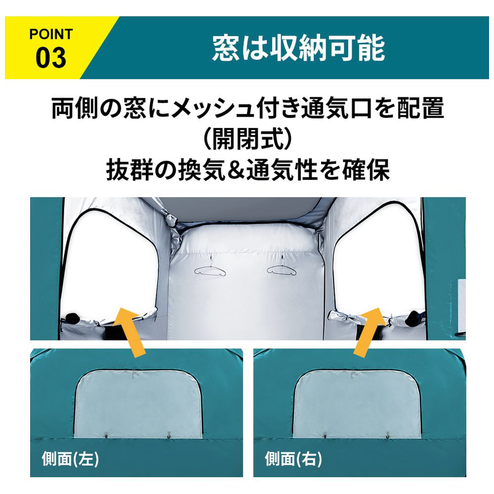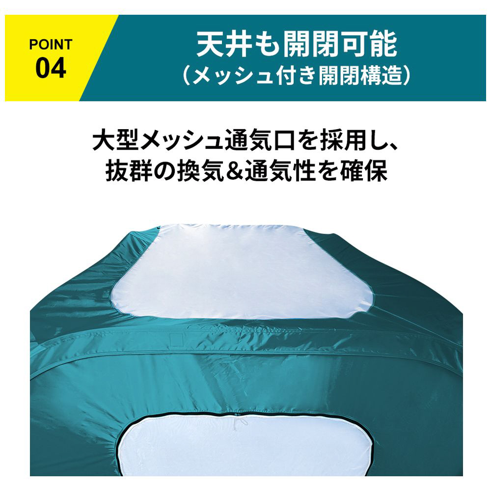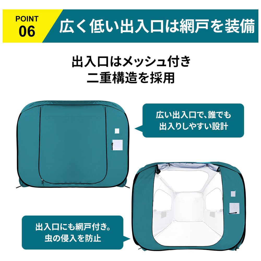■天井・窓・出入口すべてメッシュ付き二重構造、天井は着脱可能