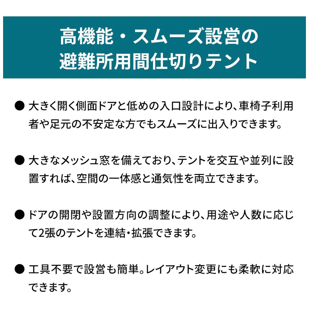災害時の集団避難生活における被災者のプライバシーを守ります。