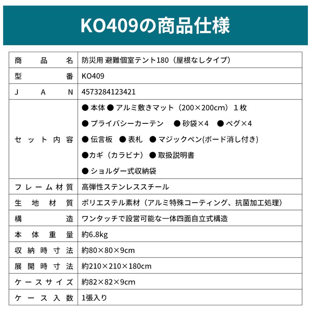 防災用 避難個室テント 180(屋根なしタイプ) KAEI(カエイ) KO409