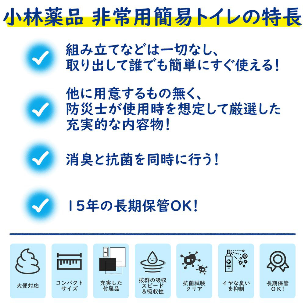 緊急・災害時 非常用 簡易トイレ。水がなくても清潔でニオイなし。