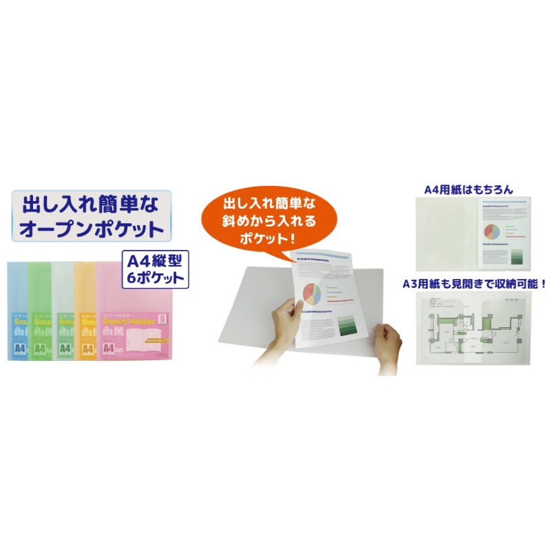スマートホルダー A4 6ポケット ライトグリーン NSH-A4-6CLG