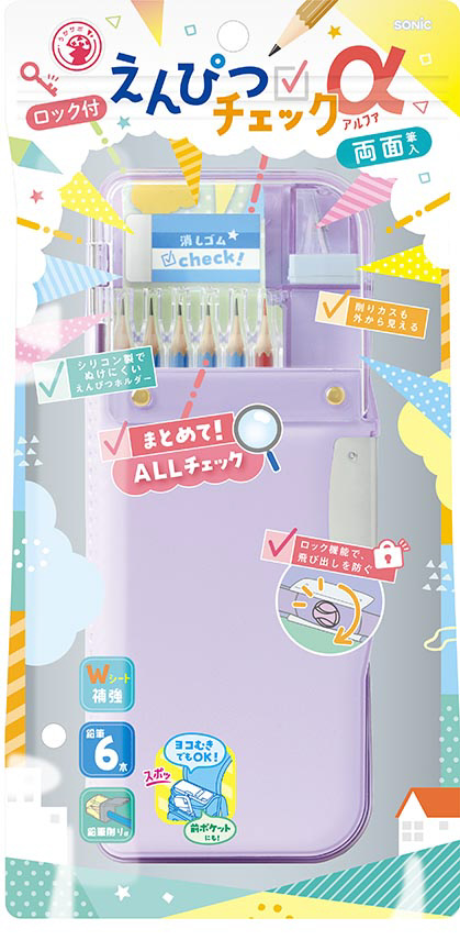 えんぴつチェックα両面筆入 ロック付 うかサポ バイオレット FD-2529-V