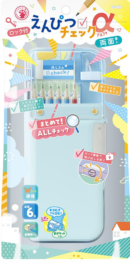 ●鉛筆の削り忘れや入れ忘れ、消しゴムが無い!…そんなうっかりを1か所チェックで解決!えんぴつチェックα両面筆入