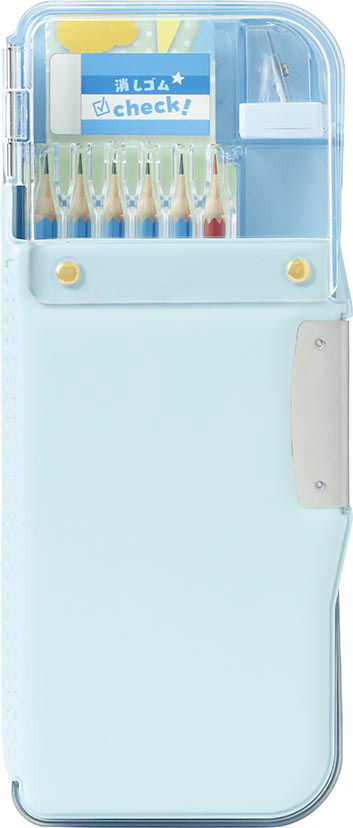 えんぴつチェックα両面筆入 ロック付 うかサポ ライトブルー FD-2529-LB