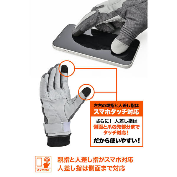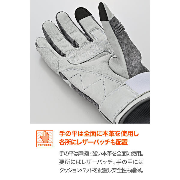 手の平の本革や手の甲のクッションパッドで安全性にも配慮しています。