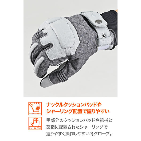 親指と薬指にシャーリングを配置することで、冬用グローブ特有の握りにくさを改善。