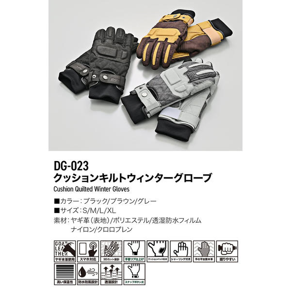 63220 DG-023 クッションキルトウィンターグローブ カラー:グレー サイズ:XL