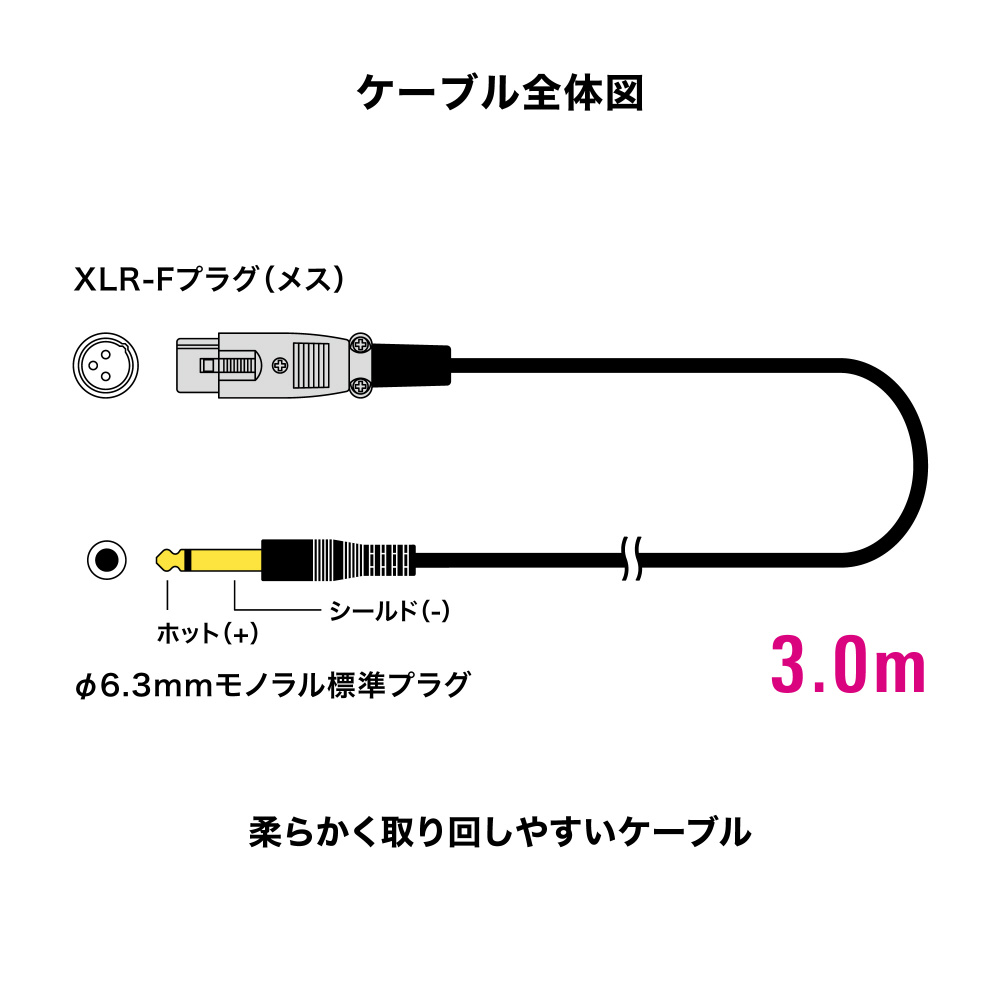 3.0m XLR-F-φ6.3mmモノラル標準 ケーブル AT-MI09/3.0 [3.0m]