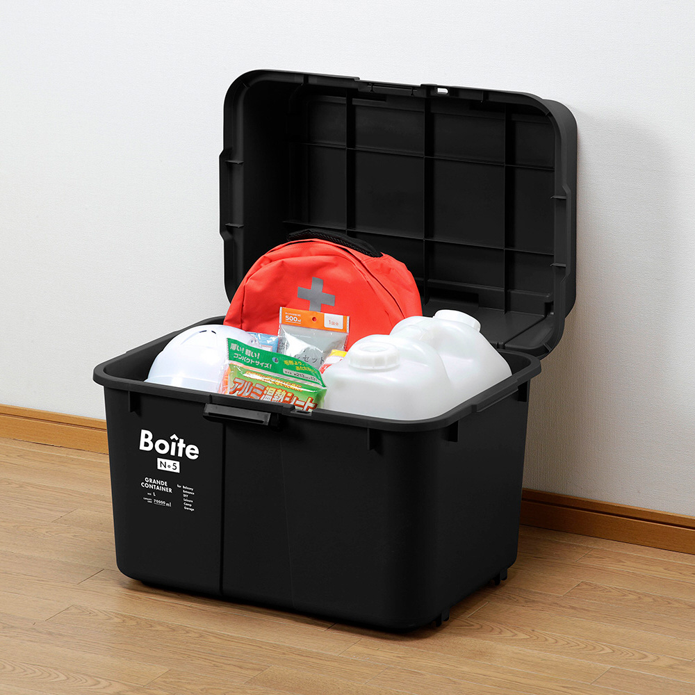 ベランダコンテナ 70L キャスター付き 大容量 Boiteガレージ ブラック MA-4014