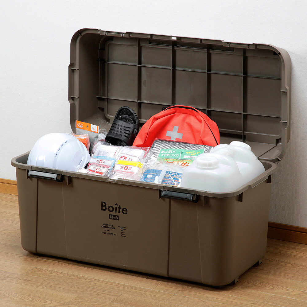 キャンプ用品の収納はもちろん、防災用品・食品ストック・ガレージ収納・園芸用品・燃料などの保管として様々なシーンで活躍。