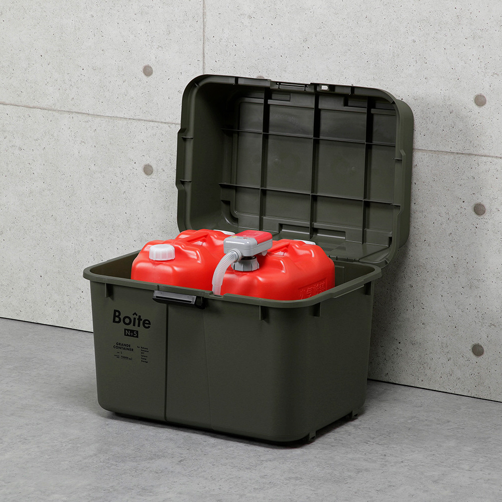キャンプ用品の収納はもちろん、防災用品・食品ストック・ガレージ収納・園芸用品・燃料などの保管として様々なシーンで活躍。