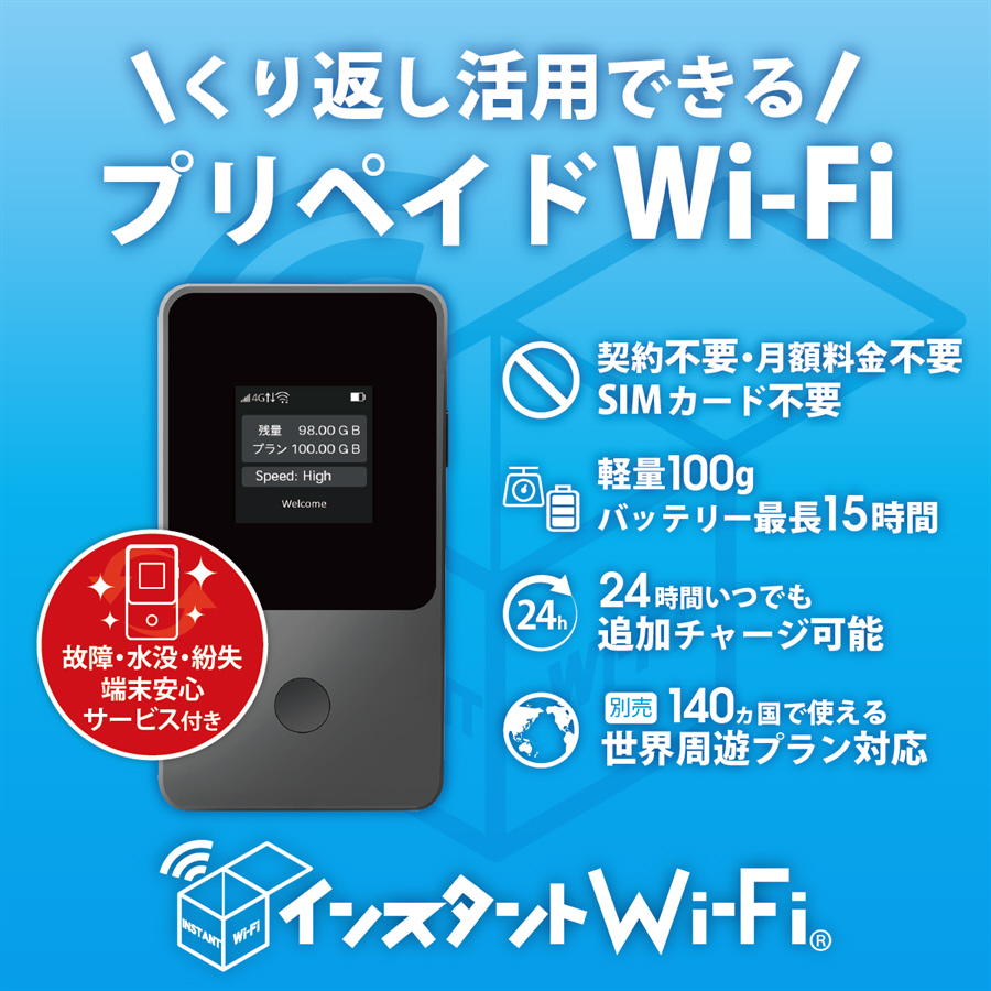 チャージしてくり返し使える、買い切り型プリペイドWi-Fi
