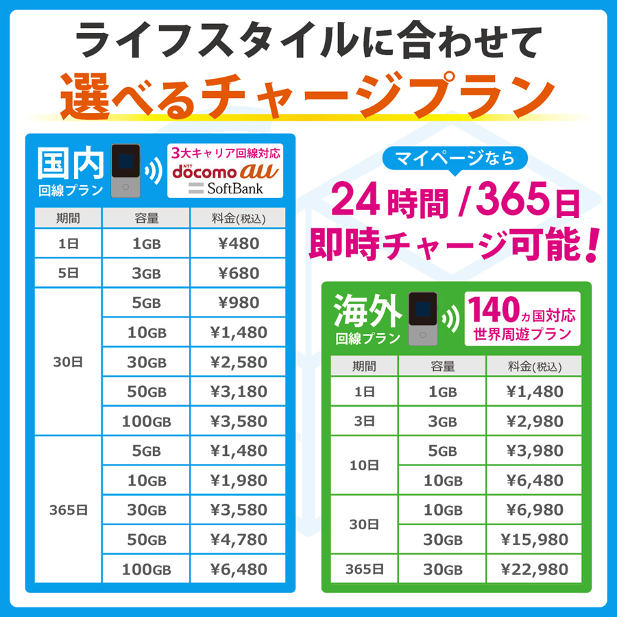 チャージしてくり返し使える、買い切り型プリペイドWi-Fi