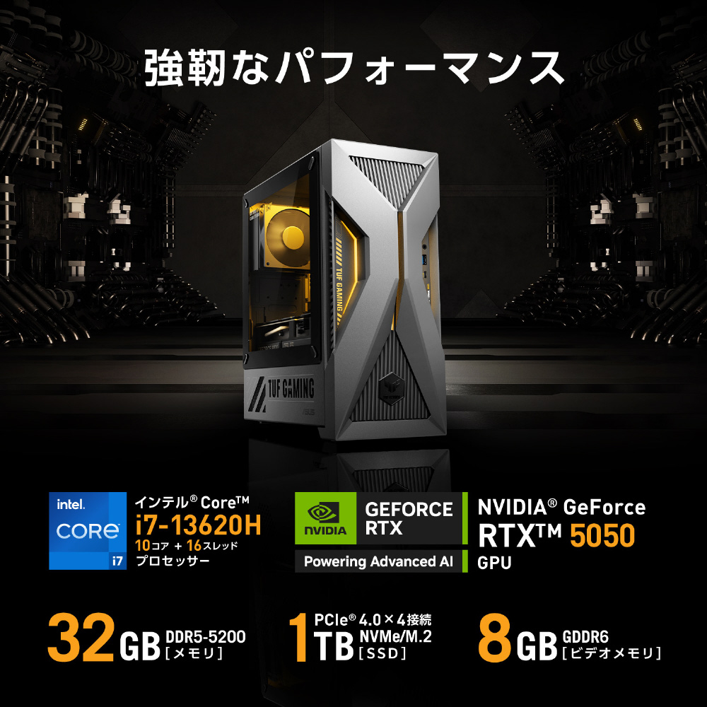T500MV-13620H514W ゲーミングデスクトップパソコン TUF Gaming(RTX 5050) ソーラーエクリプスグレー [モニター無し /Windows11 Home /intel Core i7 /メモリ:32GB /SSD:1TB /無し /2025年11月モデル]