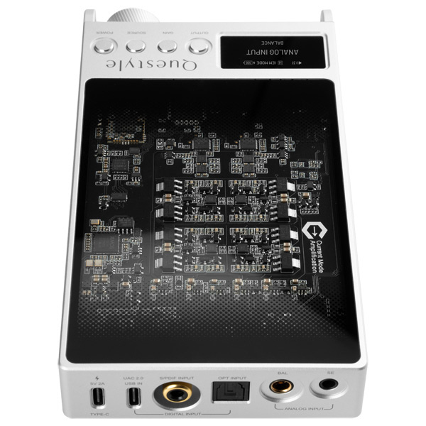 ESSのフラッグシップDACチップを2基搭載し、Questyleエンジニアが設計したTTAデコード構造と組み合わせることで、完全に据え置き型アンプと同等の性能を実現。