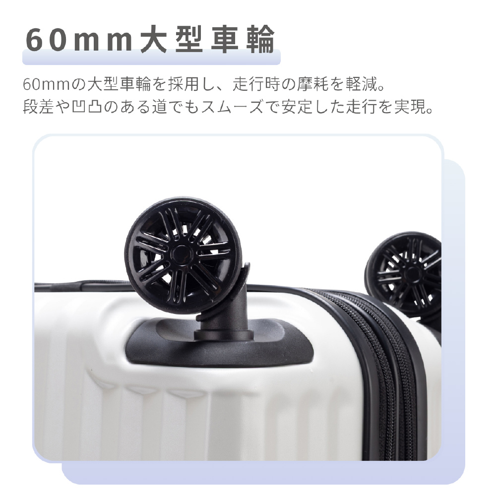 特徴:超大容量、5cm拡張、耐久ファスナー採用、静音大型キャスター