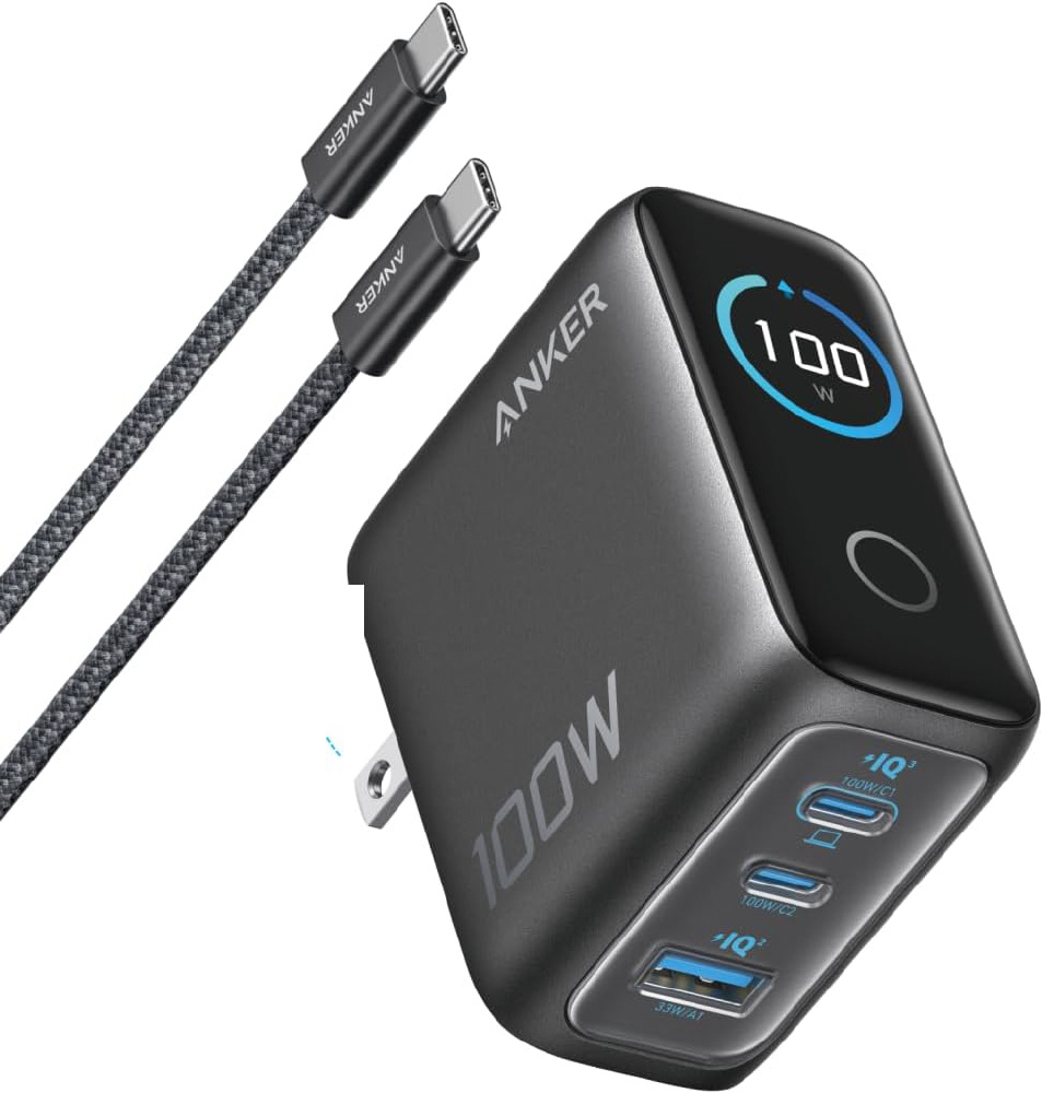 急速充電器 Anker Charger (100W 3Ports) with USB-C & USB-Cケーブル ダークグレー B121BNZ1 [USB Power Delivery対応 /3ポート]