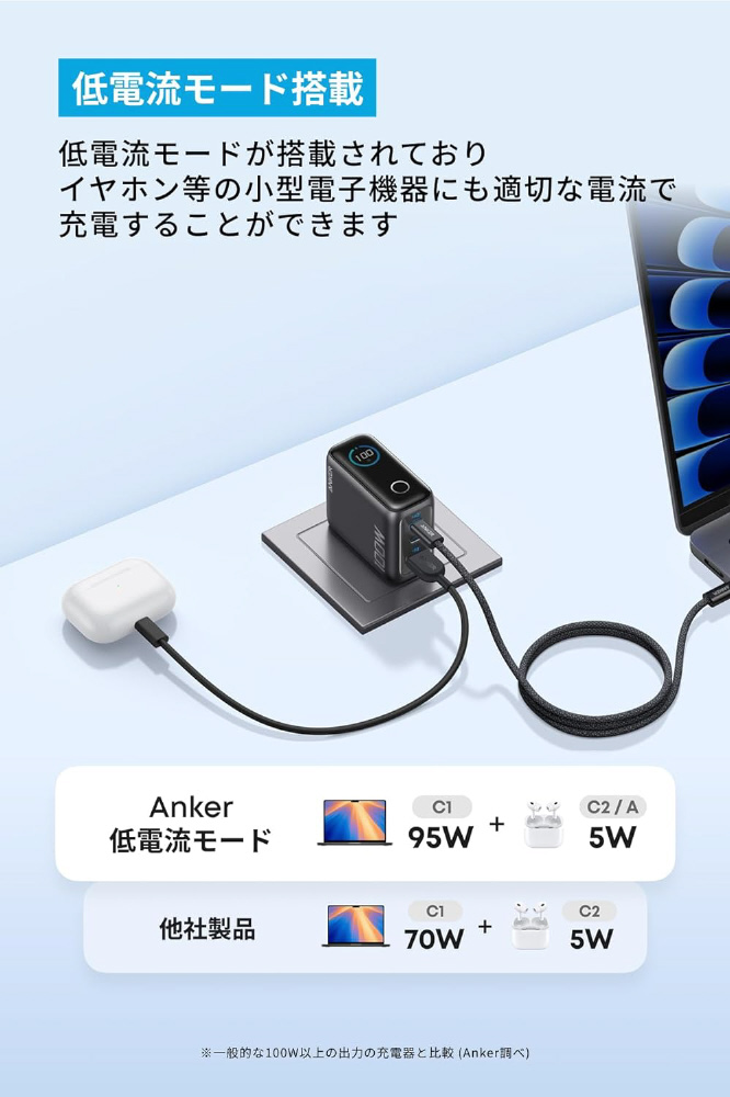 製品本体にディスプレイ機能を搭載した100W急速充電器