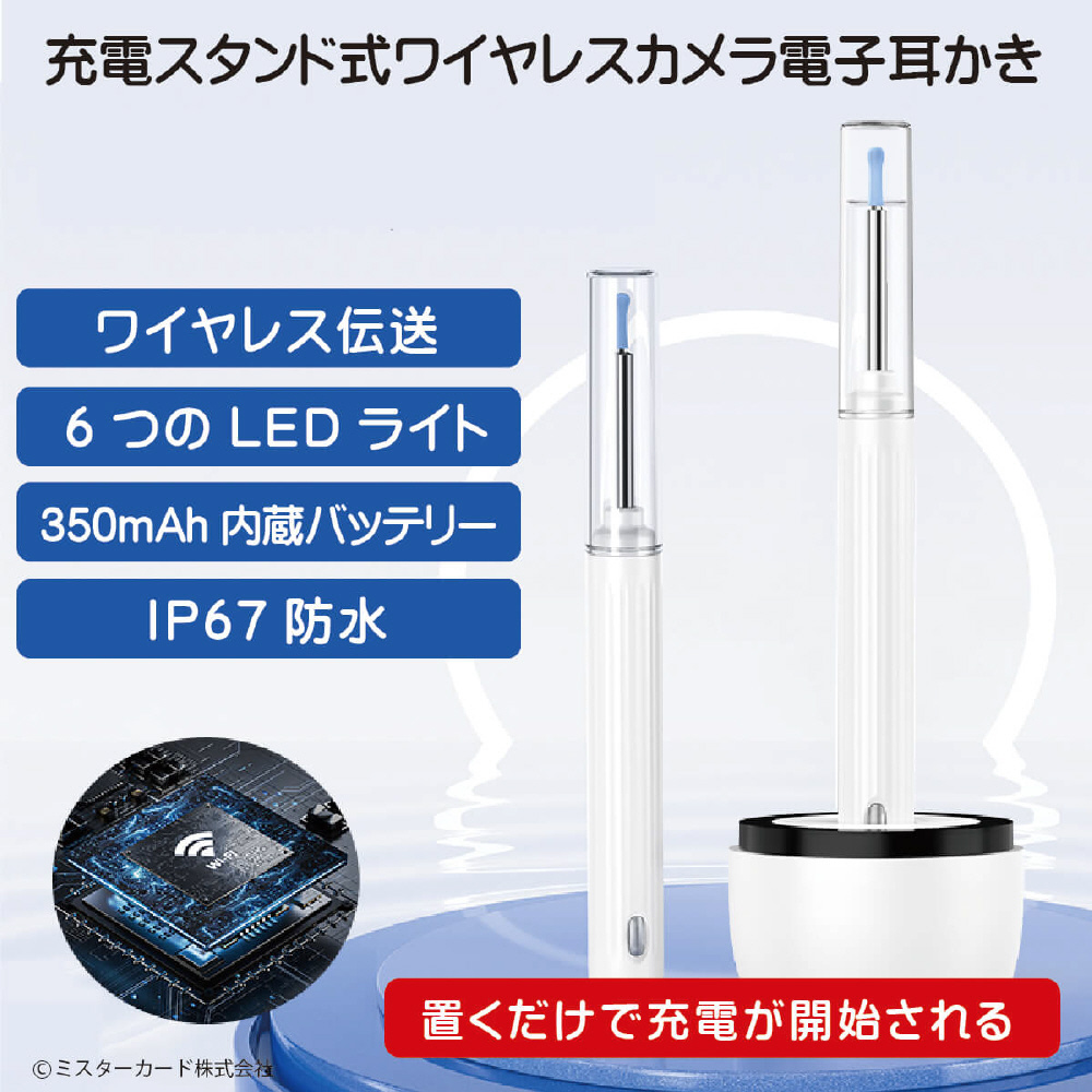スマホ画面を見ながら耳掃除できる「充電スタンド式ワイヤレスカメラ電子耳かき」