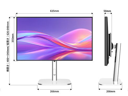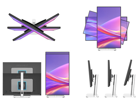 ■高さ調整が可能な昇降式多機能スタンドを搭載、最大140mmの範囲(横置時)で最適な高さに画面を調整可能です。また、縦画面として使用出来るピボット(回転)機能にも対応します。スイーベル(首振り)機能は、左右各30°の範囲で動かせます。