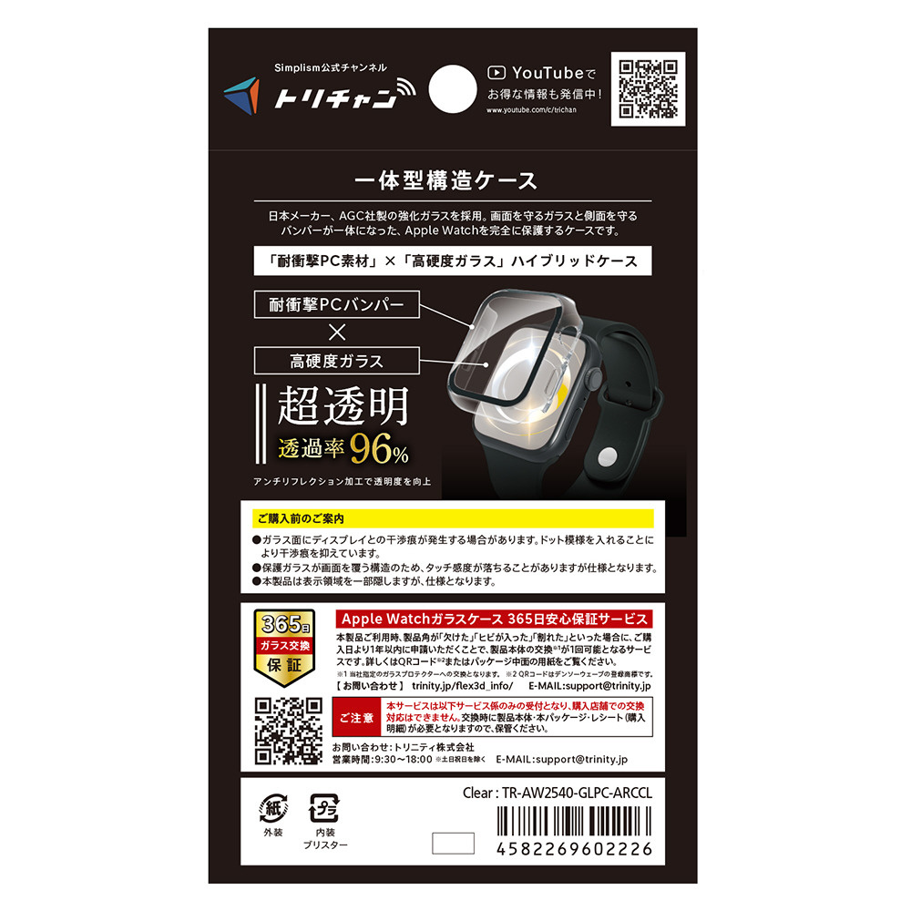 Apple Watch 40mm SE 3 / SE 2 / SE / 6 / 5 / 4 超透明 ガラス一体型PCケース クリア