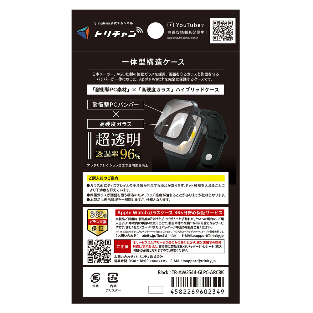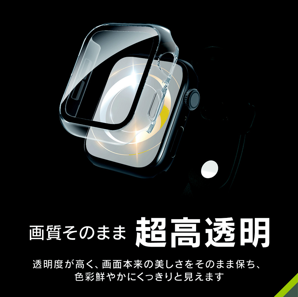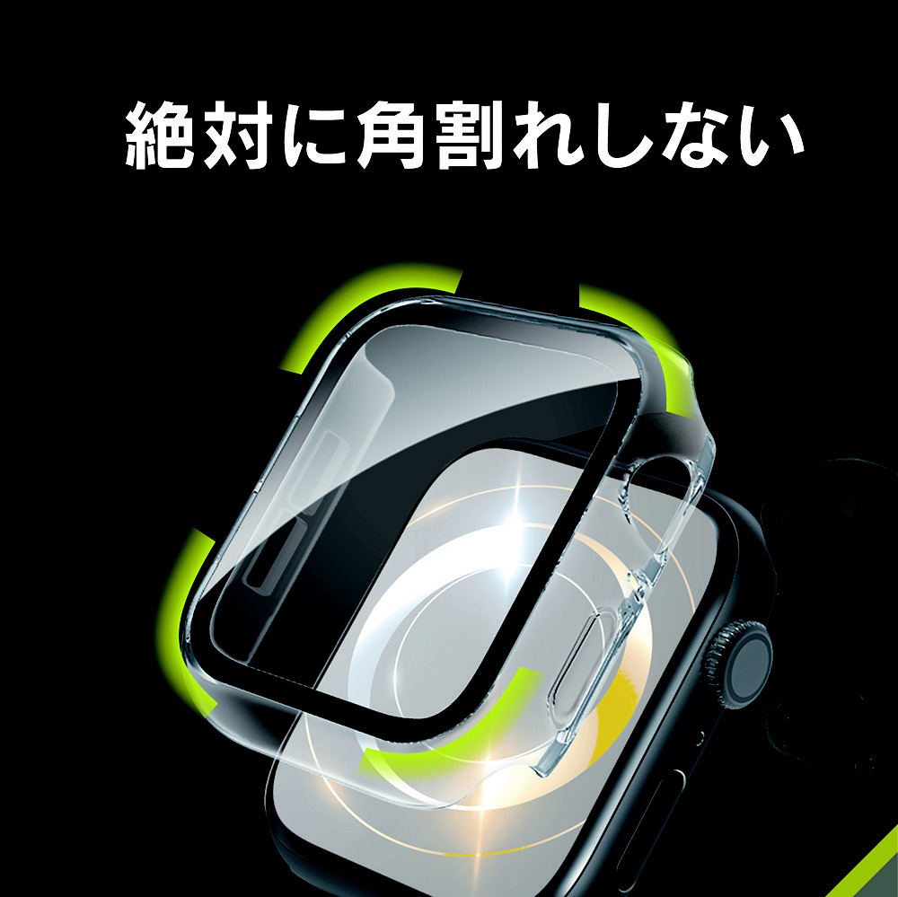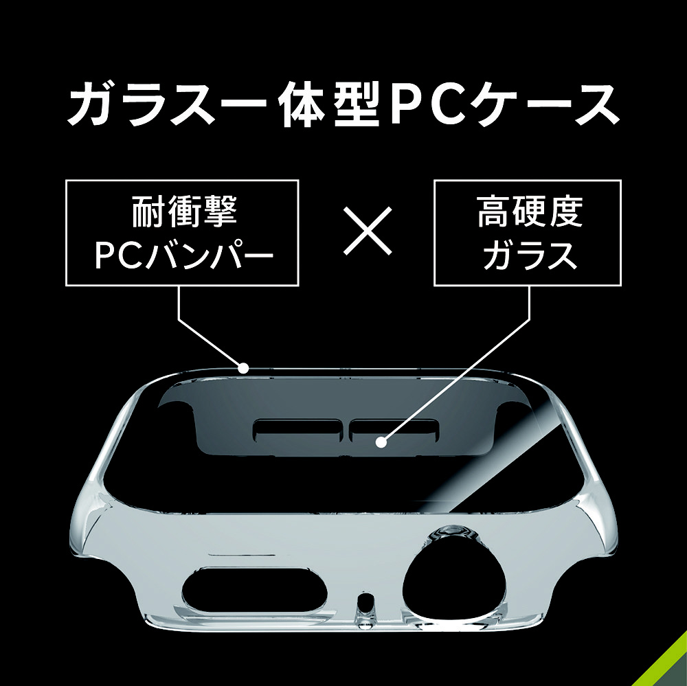 Apple Watch 44mm SE 3 / SE 2 / SE / 6 / 5 / 4 超透明 ガラス一体型PCケース ブラック
