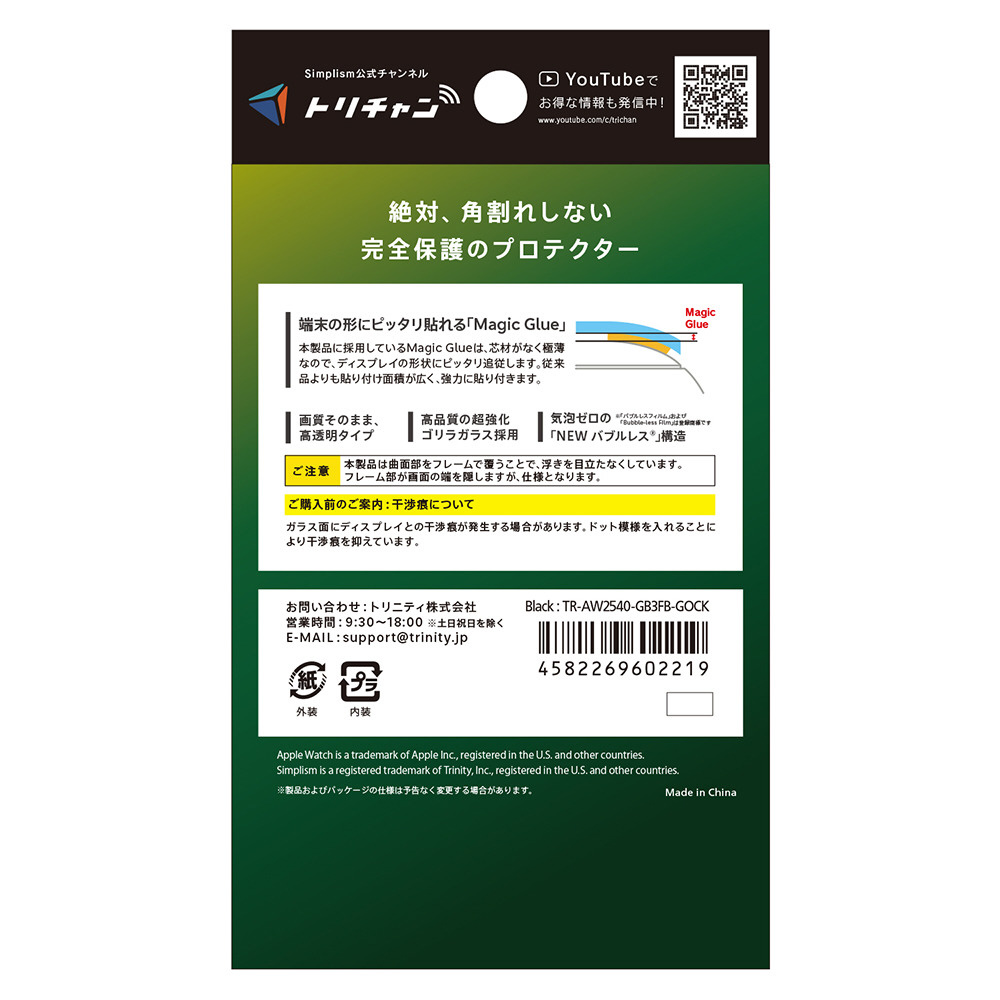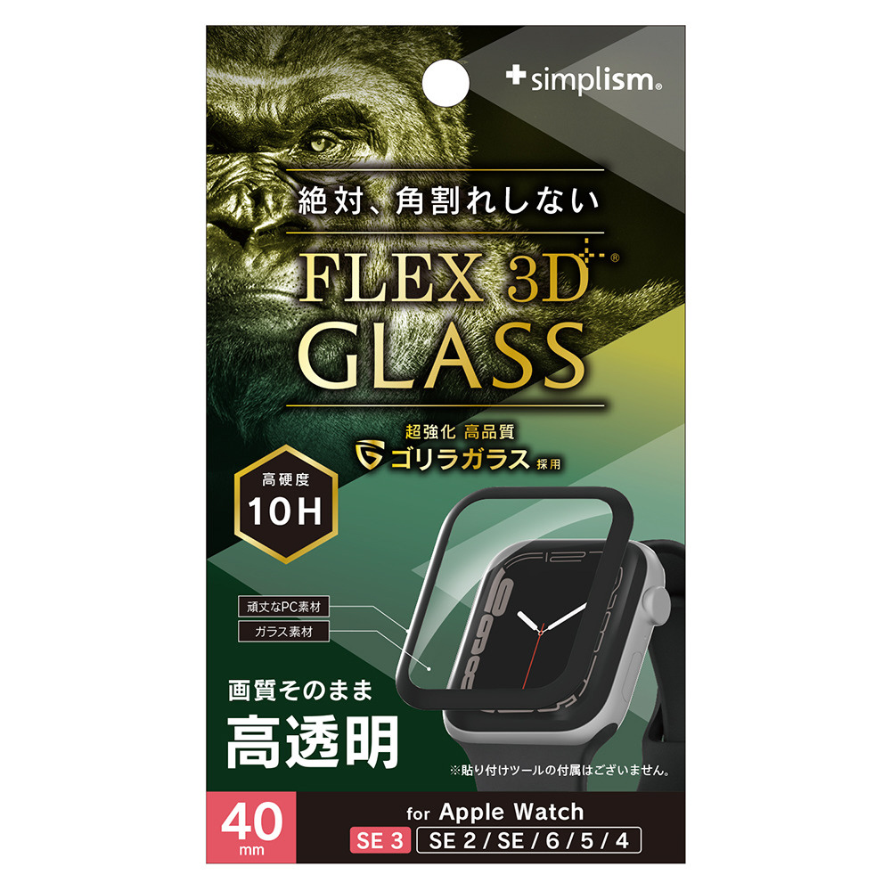 Apple Watch 40mm SE 3 / SE 2 / SE / 6 / 5 / 4 [FLEX3D] ゴリラガラス 高透明 全画面保護強化ガラス ブラック 高透明 TR-AW2540-GB3FB-GOCK