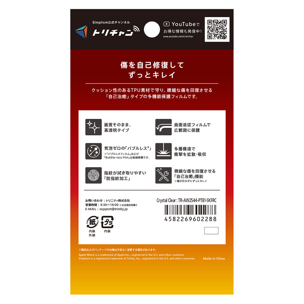 Apple Watch 44mm SE 3 / SE 2 / SE / 6 / 5 / 4 衝撃吸収 全画面保護自己治癒フィルム 光沢 光沢 TR-AW2544-PTB1-SKFRC