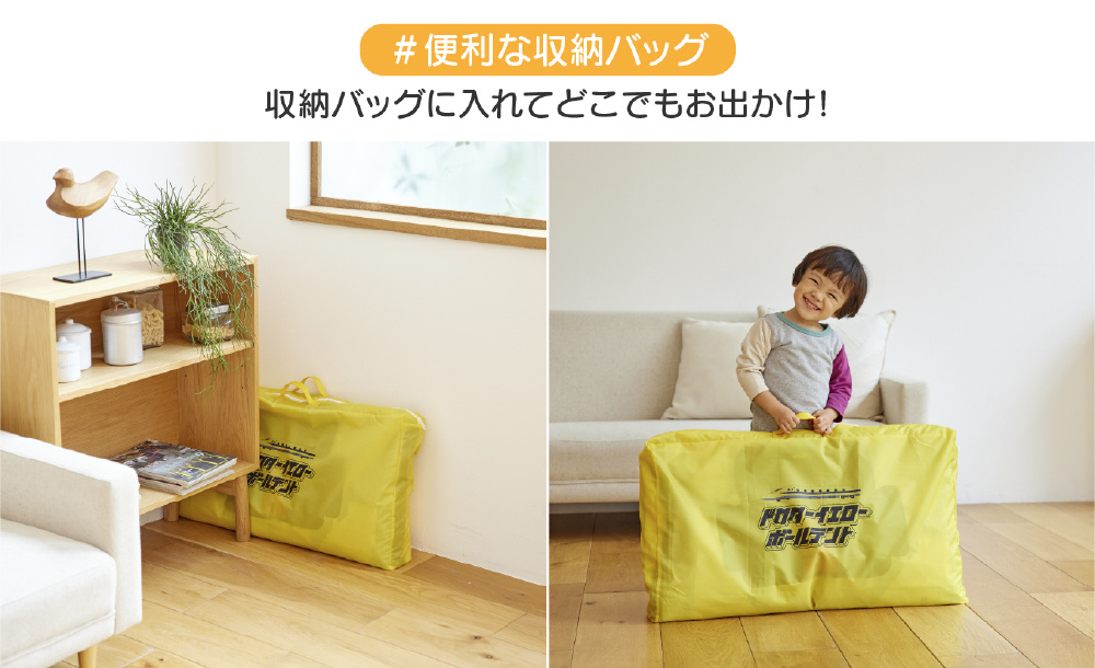 持ち運び便利な収納バッグに入れてどこでもお出かけできます。