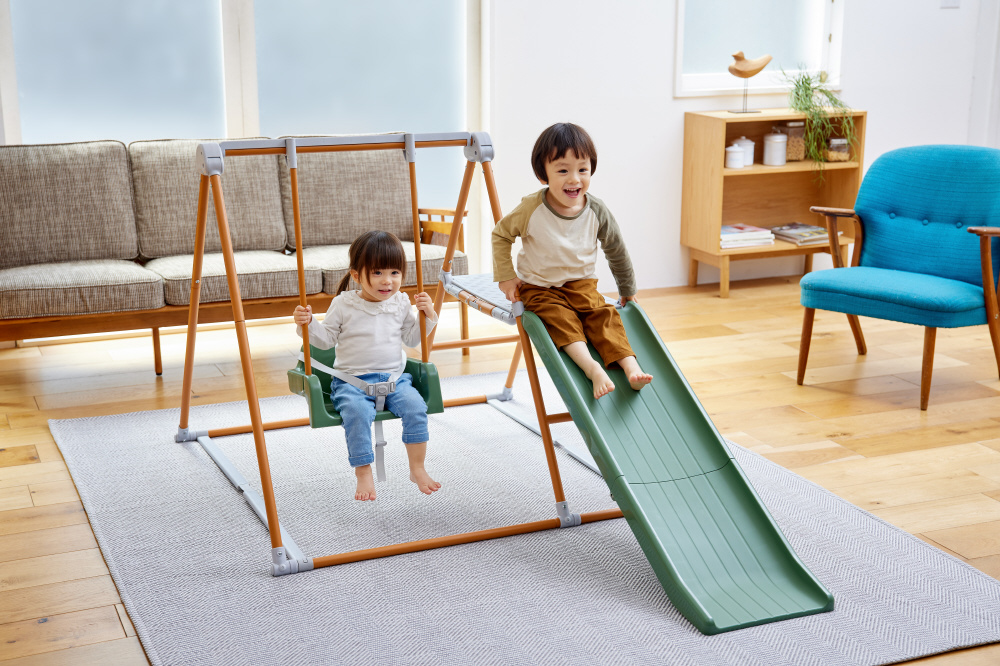 すべり台は階段を登る動作やすべる時の姿勢やスピードで、全身の筋肉やバランス感覚を養うことができます。角度は公園の一般的なすべり台と同程度です。(約32°)