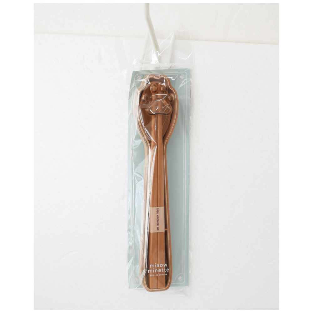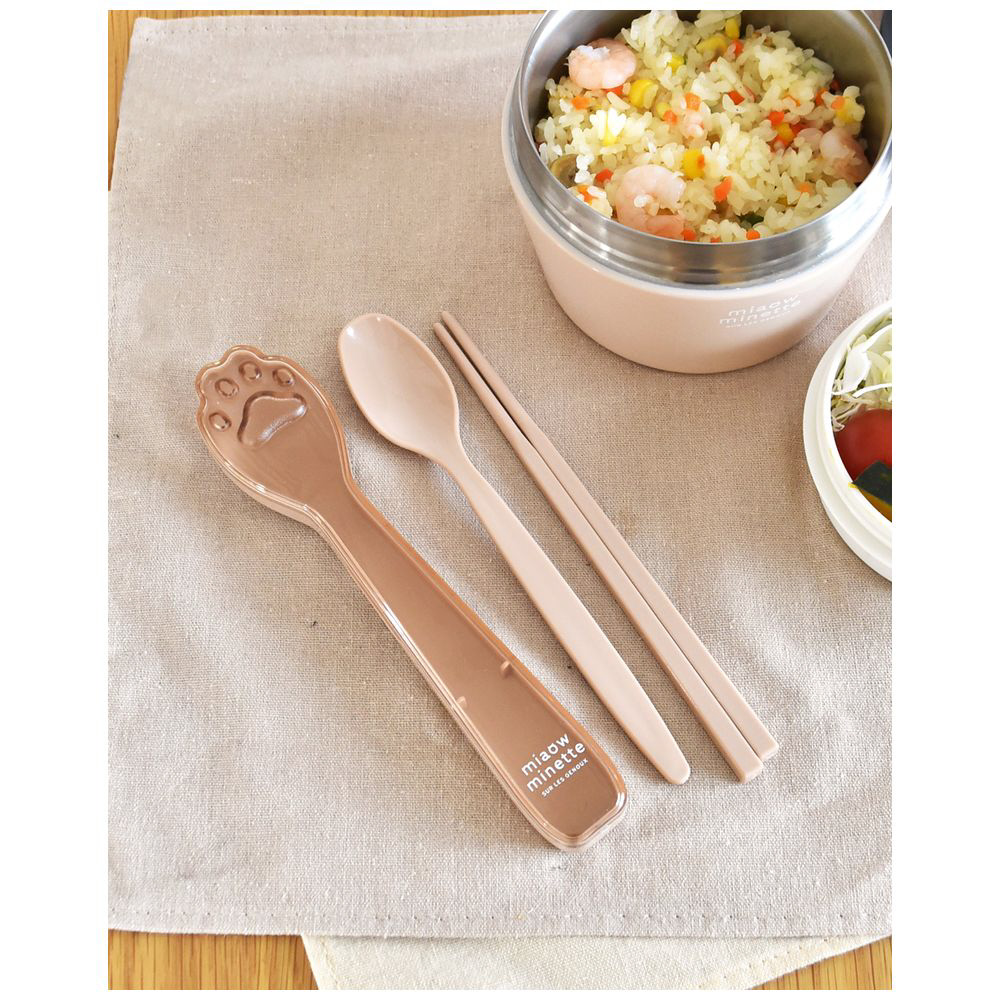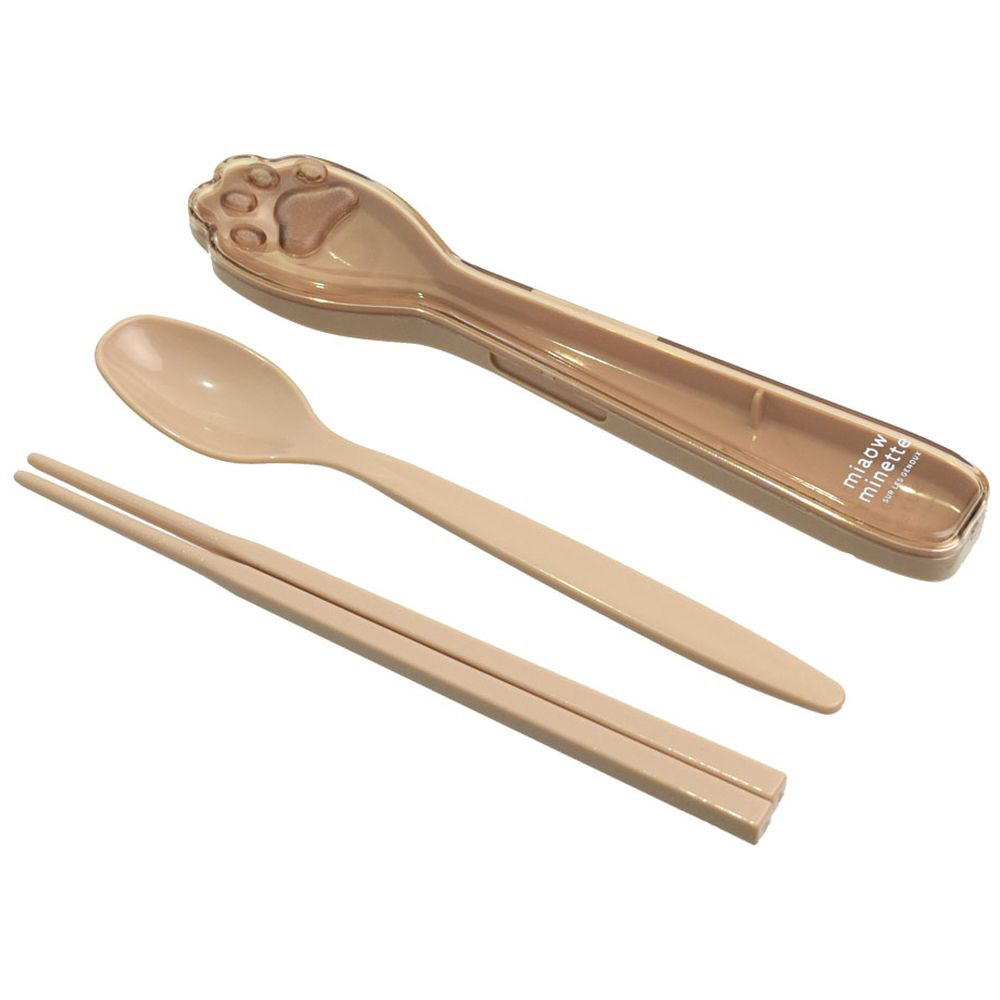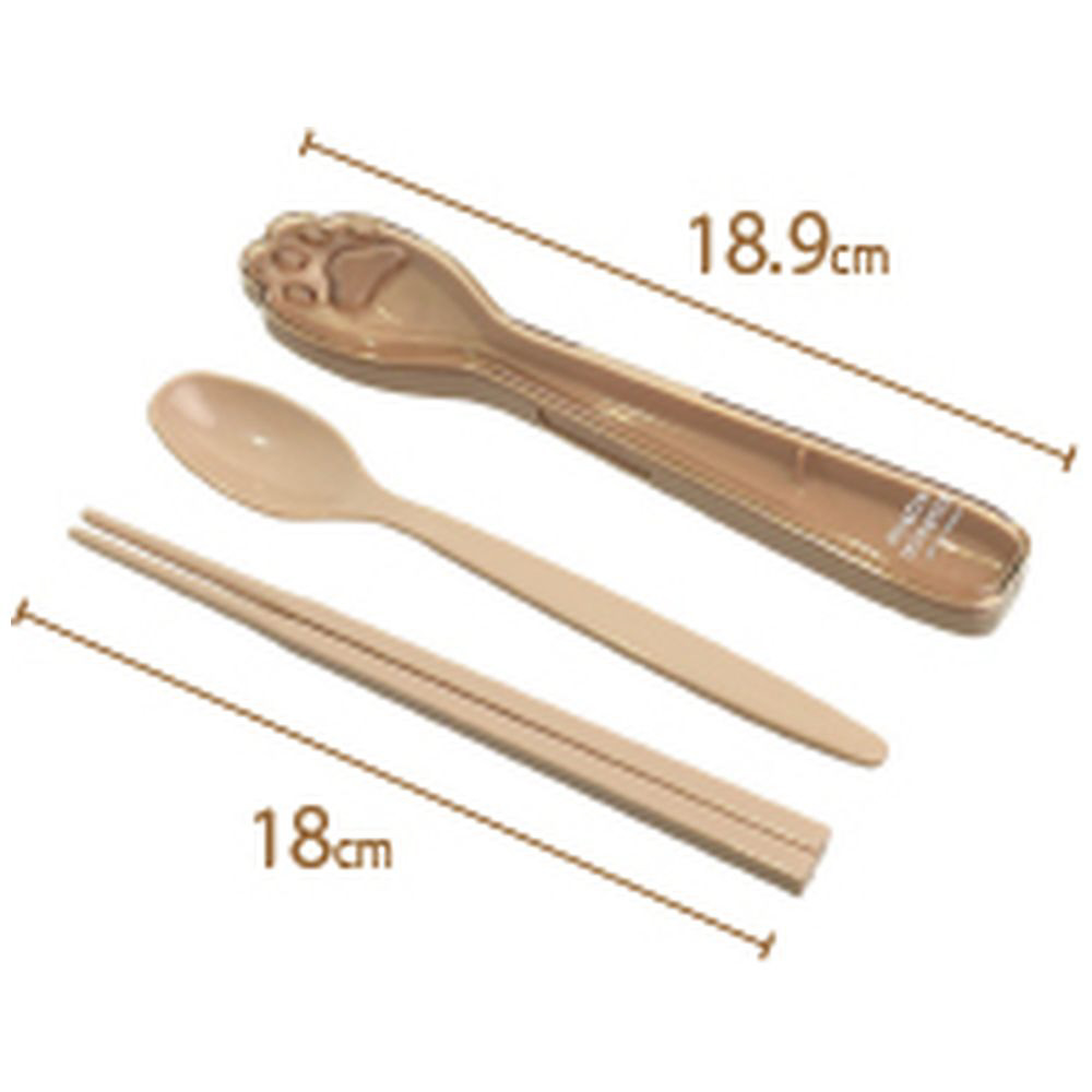 ケースにねこの肉球をイメージした凹凸を付けたコンビセット。箸・スプーン全長18cm。