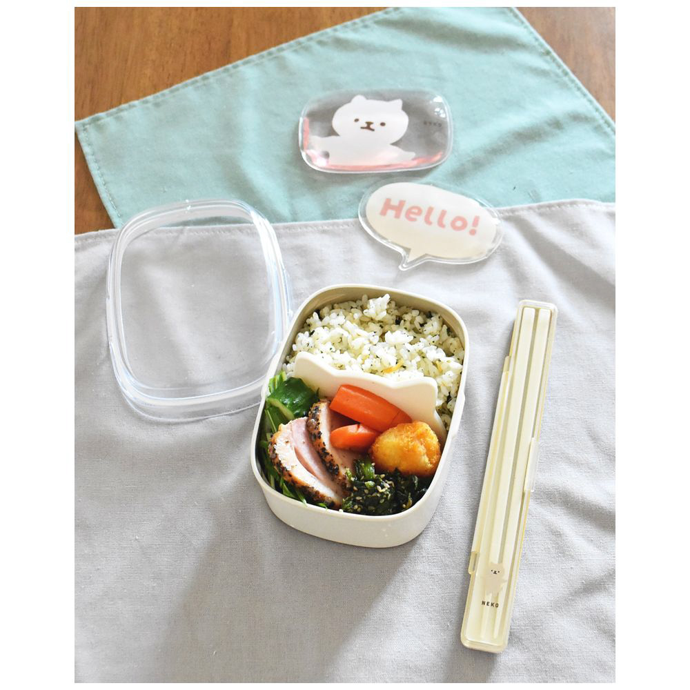 お弁当をつめると耳がちょこんと見え隠れ。ランチタイムにお弁当を食べ進めるとキャラクターの顔がだんだん見えてきます。