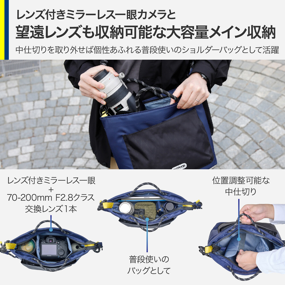 望遠レンズも収納可能な大容量のショルダーバッグ