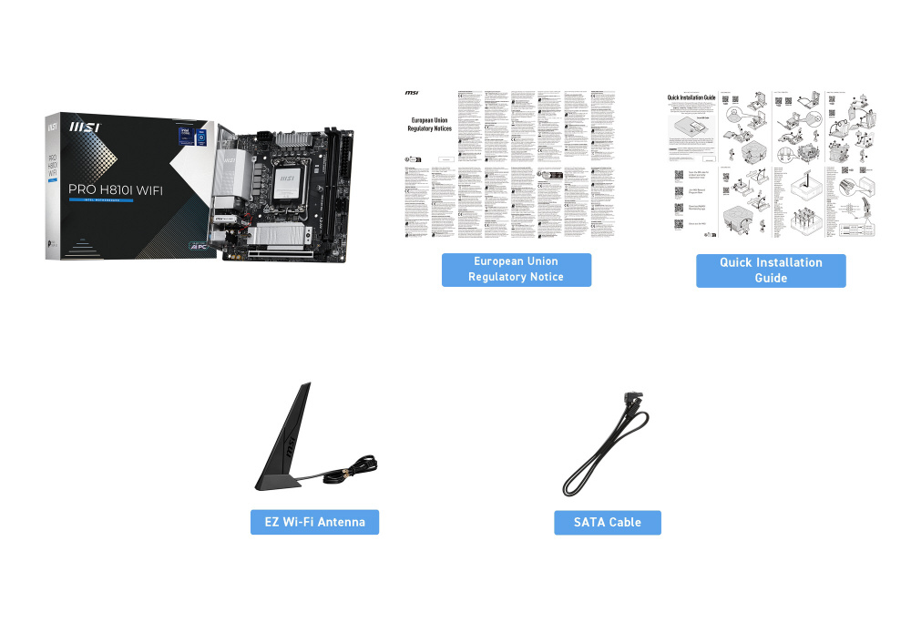 付属品 クイックインストールガイド、Wi-Fiアンテナ、SATAケーブル