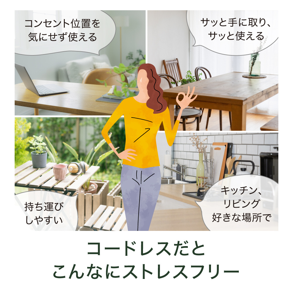 ・コードレスでいつでもサッと手の届くところに