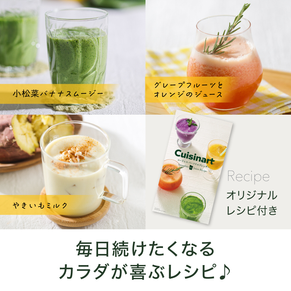 コードレス パーソナルブレンダーなら、野菜や果物の栄養を手軽に摂取することができます。