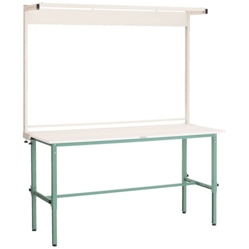 TRUSCO 軽荷重作業台高さ調節式(150kg)AEM型 1800×750×H1858〜2158(全高)ツールハンガー付 グリーン色