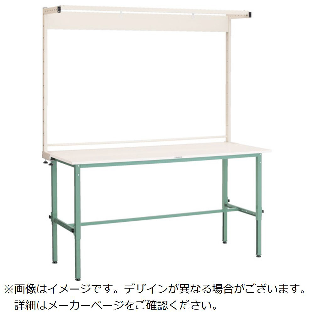 TRUSCO 軽荷重作業台高さ調節式(150kg)AEM型 1800×900×H1858〜2158(全高)ツールハンガー付 グリーン色