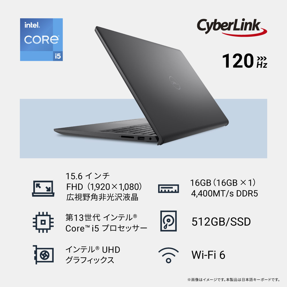ノートパソコン Dell 15(DC15250 v2) カーボンブラック ND65-GHBC [15.6型 /Windows11 Home /intel Core i5 /メモリ:16GB /SSD:512GB /無し /日本語版キーボード /2026年春モデル]