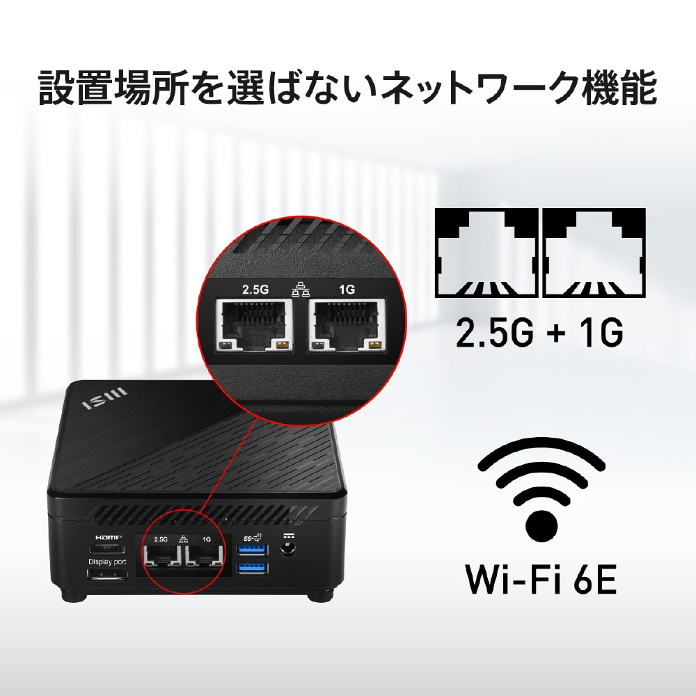 2.5G LAN + 1G LAN・Wi-Fi 6Eを備えており、有線や無線接続を問わず快適な通信環境を提供します。