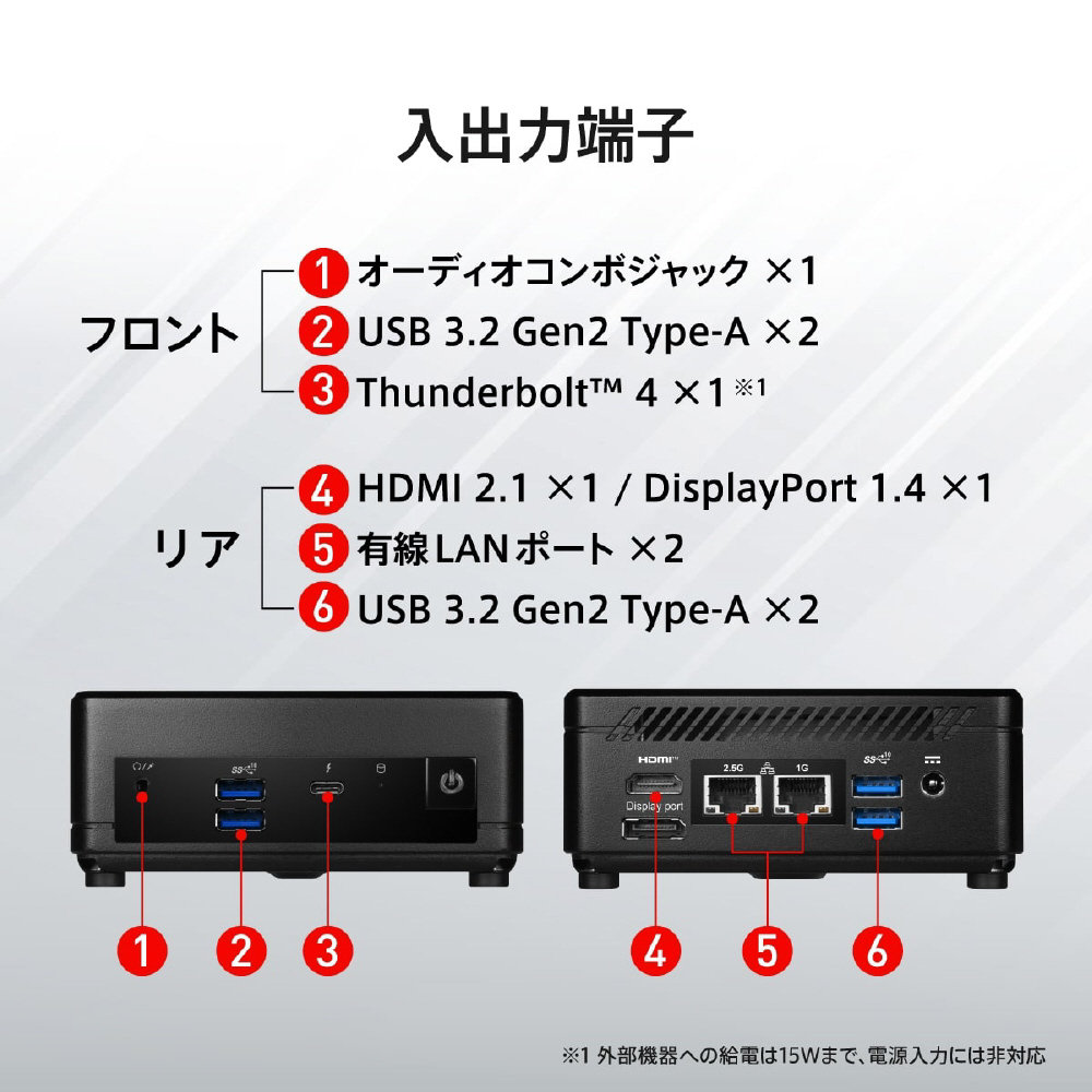 Thunderbolt 4 ×1 ※外部機器への給電は15Wまで、電源入力には非対応