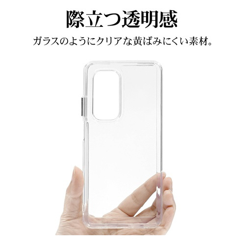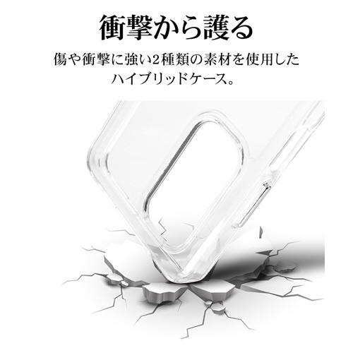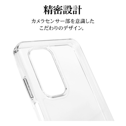 ●側面は弾力と柔軟性を兼ね備えたTPU素材で端末を衝撃から保護し、着脱も簡単です。※衝撃吸収については、一般的なポリカーボネート製ケースと比較した自社検証結果で、無破損、無故障を保証するものではありません。